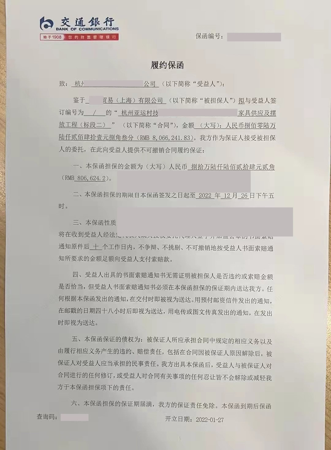 4. 签订担保协议,付款,递交材料到银行等出函。