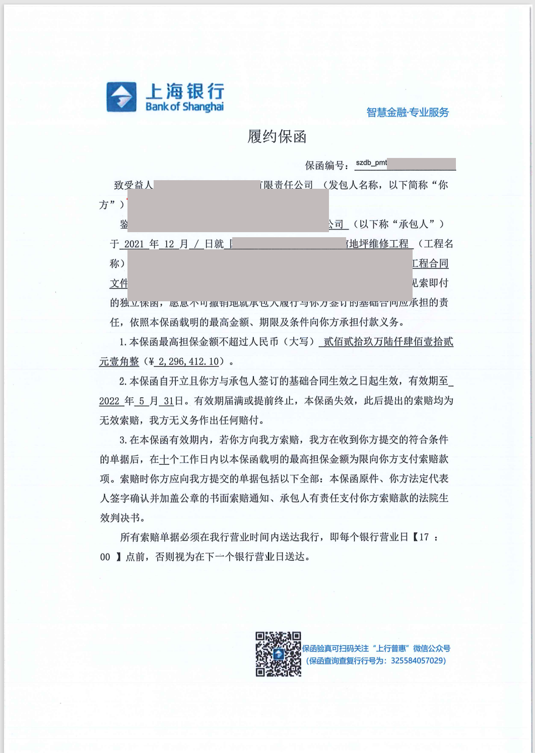 3. 项目材料如招标文件及中标通知书、工程承包合同或协议、近3年过往合同或业绩清单、保函格式、金额较大项目须提供工程量清单;